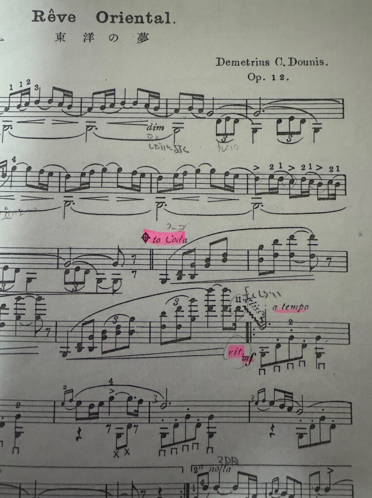 • 既に紹介している「東洋の夢(Reve Oriental)」です。作曲はDemetrius C.Dounisです。聞いたことがない作曲家です。他のマンドリン独奏曲はなさそうです。