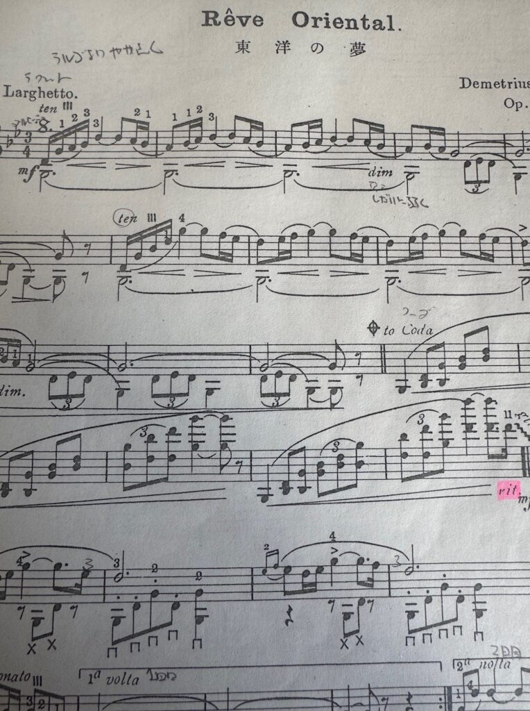 東洋の夢」を弾くと懐かしむ独奏家も多いと思います。むかし流行ったマンドリン独奏曲です。